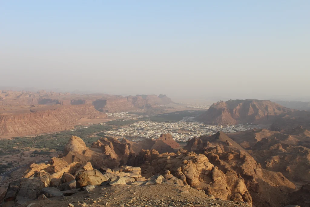 عندما تنتهي من صعود القلعة لأعلى سوف ترى مدينة العلا والواحة، وهي نقطة مثالية لعشاق التصوير.